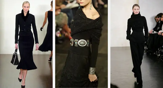 Tabii ki daha kolay ancak her zaman şık olan seçenek, tamamen siyah bir kombin. Çarpıcı bir kemer ya da zarif bir çantayla Ralph Lauren havasını yakalamak mümkün.